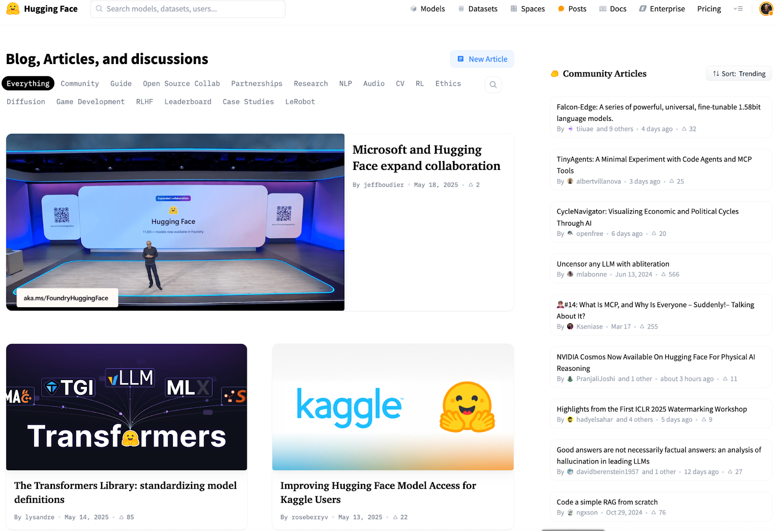 The Hugging Face blog is a go-to resource for staying updated on natural language processing and machine learning advancements. You’ll find insights on developing and applying LLMs, including BERT, GPT, and more. You’ll also discover articles about model deployment and tutorials on fine-tuning and integrating models into production workflows. With a strong emphasis on democratizing AI, the blog has regular updates, community contributions, collaborative projects, and new tools that increase machine learning accessibility. You’ll find valuable insights from Hugging Face regardless of whether you’re an AI enthusiast, researcher, or developer.