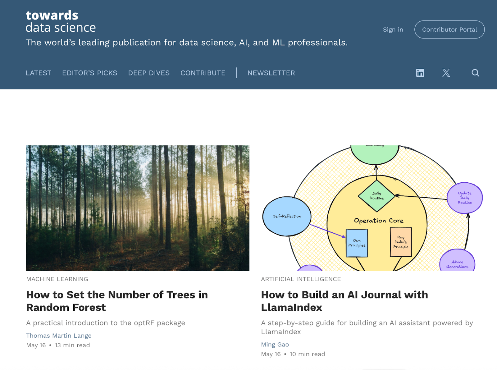 Towards Data Science offers insightful perspectives on the latest developments in machine learning and data science. Started in 2016 as a community hub, the blog hosts content on cutting-edge algorithms, model deployment pipelines, and emerging fields like self-supervised learning, programming techniques, and data engineering. Backed by a group of editors, regular contributors write articles that are a mix of tutorials, product roundups, industry trends, practical guides, and best practices. Catering to both newcomers and seasoned researchers, you’ll find Towards Data Science is a valuable resource if you have any interest in data science and machine learning.