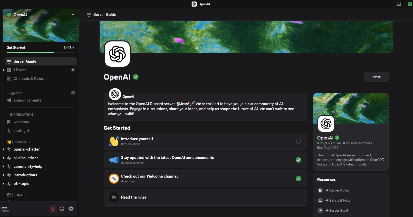 The official OpenAI Discord server is a community where you can connect, engage, and explore the latest offerings of ChatGPT, Sora, and OpenAI models. You can customize the information you want regarding OpenAI announcements and product updates. Individual channels are available to discuss GPTs, Sora, AI-generated images, prompt engineering tricks, developer projects, and OpenAI feedback.